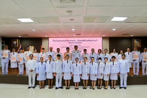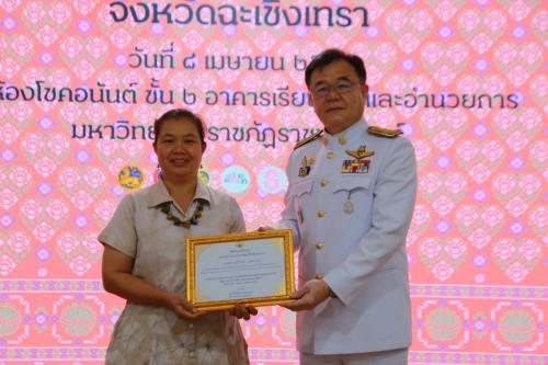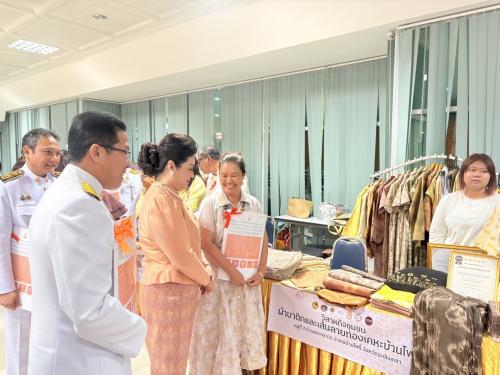 เข้าร่วมโครงการสร้างการรับรู้ภูมิปัญญาผ้าไทยและผ้าลายพระราชทาน พิธีมอบลายผ้าพระราชทาน “ผ้าลายสิริราชพัสตราภรณ์” โดยมี นายขจรเกียรติ รักพานิชมณี ผู้ว่าราชการจังหวัดฉะเชิงเทรา เป็นประธาน พร้อมด้วยนางสาวฉัตรประอร นิยม รองผู้ว่าราชการจังหวัดฉะเชิงเทรา นางปิติมา รักพานิชมณี ประธานชมรมแม่บ้านมหาดไทยจังหวัดฉะเชิงเทรา หัวหน้าส่วนราชการ ช่างทอผ้า กลุ่มทอผ้า และผู้ผลิตผ้าทุกกลุ่ม ทุกเทคนิคในจังหวัดฉะเชิงเทราเข้าร่วมพิธี เพื่อส่งมอบลายผ้าพระราชทานฯให้แก่กลุ่มทอผ้า กลุ่มผู้ผลิตได้นำลายผ้าพระราชทานไปเป็นต้นแบบและพัฒนาต่อยอดเพิ่มมูลค่าให้กับผลิตภัณฑ์ผ้าพื้นถิ่นและงานหัตถกรรม เพื่อส่งเสริมเศรษฐกิจฐานราก สร้างรายได้กระจายสู่ชุมชน